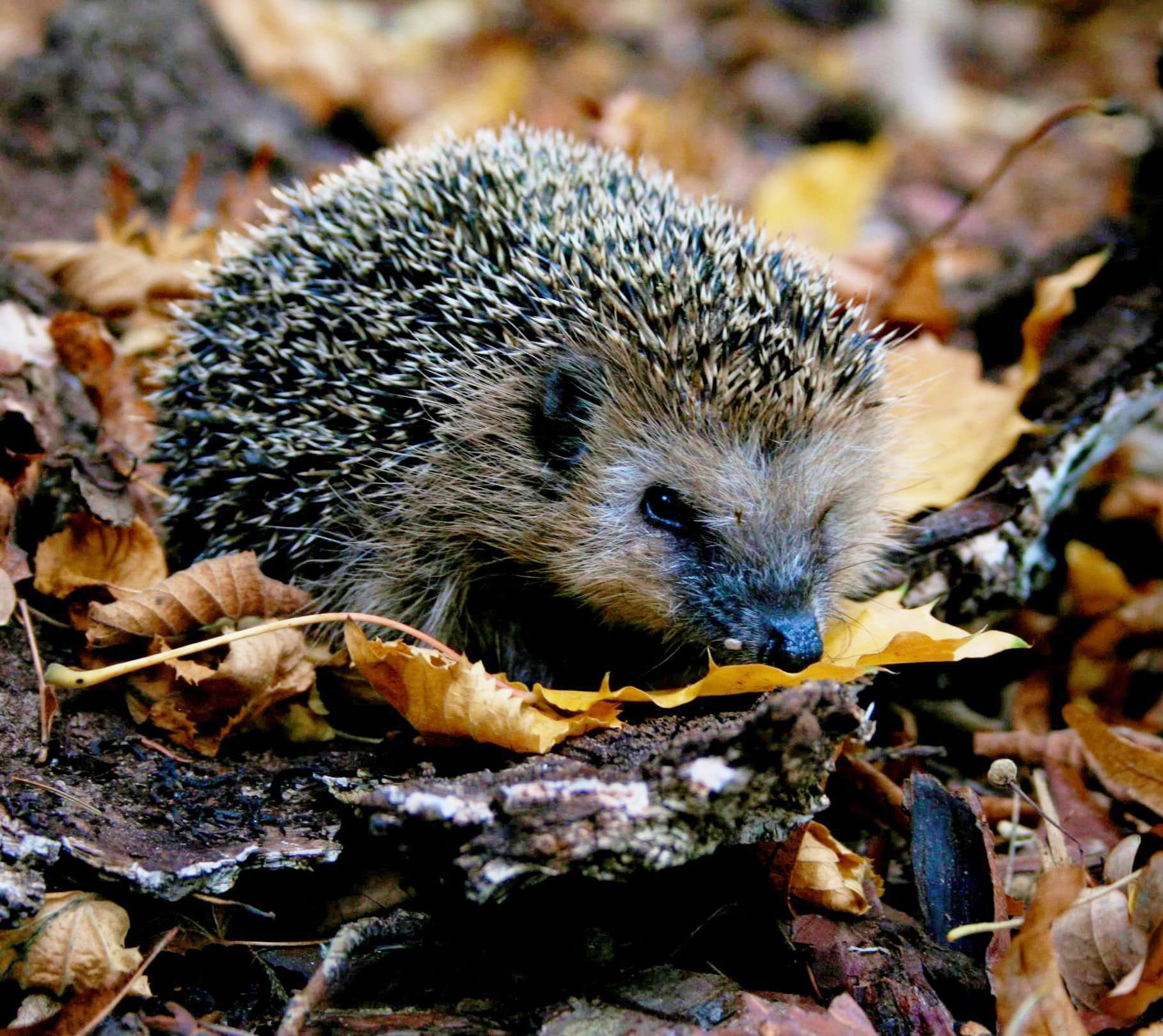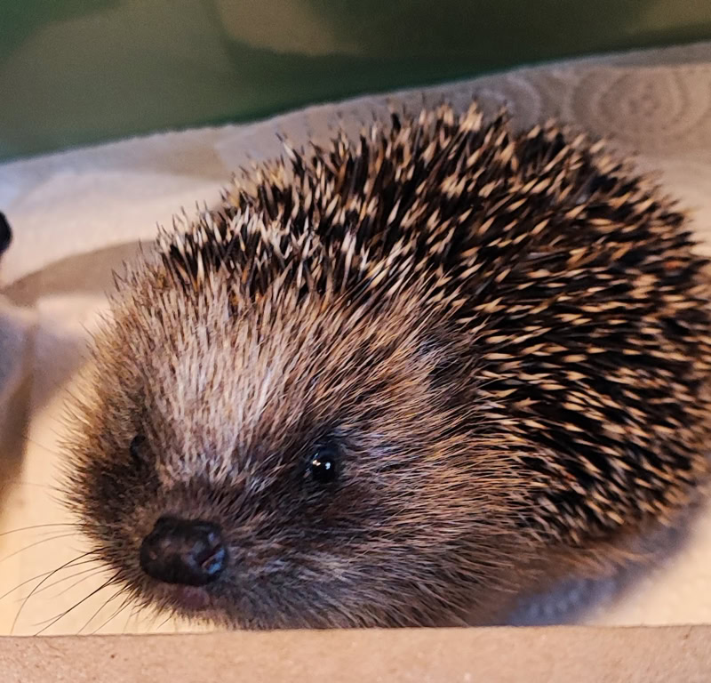 “Ich bin ein Igelkind. Anfangs sind meine Stacheln noch ganz weich. Meine Mama säugt uns sechs Wochen und dann bringt sie uns nachts bei, Insekten zu fressen. Ich muss ganz schnell viel zunehmen, sonst schaffe ich den Winterschlaf nicht! Uns Igeln geht es nicht gut! Es gibt immer weniger Nachtinsekten, und in der Not müssen wir Schnecken fressen und kriegen Würmer: Igitt! Die meisten von uns leben in euren Gärten und Parks, da sind Fallobst und Kompost und Blühpflanzen mit Käfern, Larven und Faltern. Draußen in der Landschaft blüht nicht mehr viel oder es wird totgespritzt. Wenn ich meine Familie verloren habe, laufe ich tagsüber durch euren Garten und wärme mich in der Sonne. Guckt mal auf die Straße, ob meine Mama da liegt! Bitte bringt mich in eine Igelstation.“